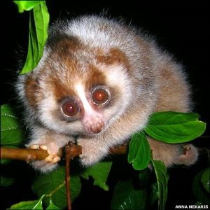 “ลิงลมหรือนางอาย (Slow loris)” เราคงนึกสัตว์รูปร่างหน้าตาอ้วนกลมราวตุ๊กตา เป็นสัตว์ขนาดเล็ก แม้ว่าลิงลมจะเป็นสัตว์ในกลุ่มเดียวกับพวกลิง แต่หากใครเคยเห็นมันมาก่อนจากในสวนสัตว์ จะรู้ว่าแตกต่างกันราวคนละพวก นางอายนั้น ไม่ทะลึ่งตึงตัง เคลื่อนไหวรวดเร็วอย่างเจ้าจ๋อทั่วไป เนื่องจากมันเป็นสัตว์หากินเวลากลางคืน กลางวันมักหลบซ่อนตัว และด้วยความที่ดวงตากลมโต ช่วยในการมองเห็นเพื่อดำรงชีวิตในตอนกลางคืน แสงจ้าตอนกลางวัน ย่อมไม่เป็นผลดีกับดวงตา ‘บิ๊กอาย’ ของมัน มันจึงซุกหน้าลงกับทรวงอก แล้วกอดแขนทั้งสองข้างอ้อมหัวไว้จนมิด ท่าทางที่เราเห็นกันจนเป็น ‘แบรนด์เนม’ ของสัตว์ชนิดนี้