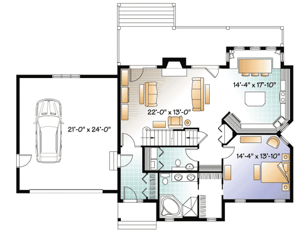 ด้านในแบ่งออกเป็น 3 ห้องนอน โดยมีห้องนั่งเล่น ห้องครัว ห้องทานอาหาร ห้องน้ำ และห้องนอนอยู่ชั้นล่าง ส่วนชั้นลอยจะเป็นห้องนอนเล็กอีกสองห้องและห้องน้ำชั้นบน