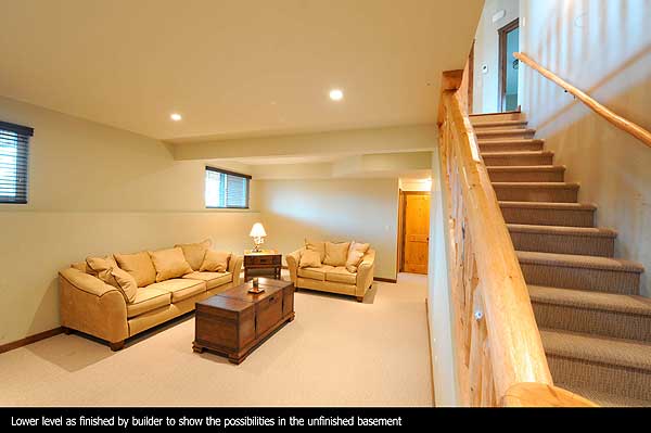 ภายในตกแต่งเน้นความคลาสสิค และเฟอร์นิเจอร์ส่วน ใหญ่ใช่วัสดุธรรมชาติ เน้นสีดำ น้ำตาล เข้ากับสีของไม้และหินซึ่งเป็นวัสดุหลักของบ้าน ถึงแม้จะมีขนาดบ้านไม่กว้างนัก แต่ลักษณะของชั้นล่างจะเหมือนกับอยู่ในห้องโถงขนาดใหญ่เลยทีเดียว