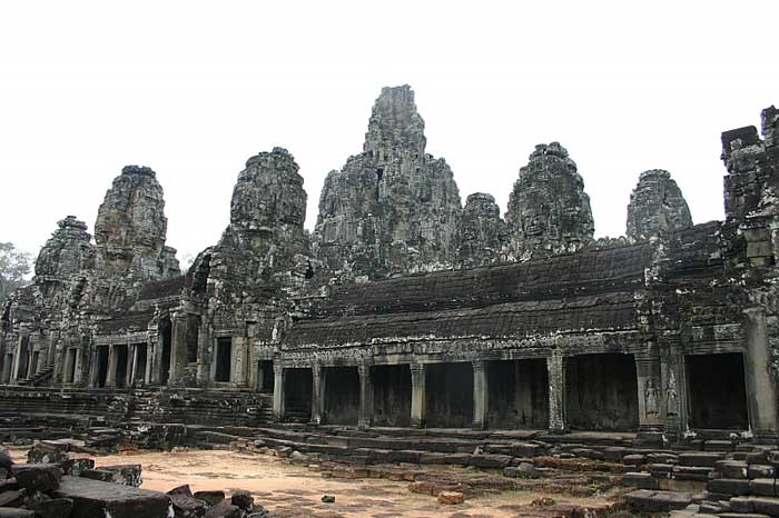 ปราสาทบายน ตั้งอยู่ในนครหลวงโบราณนครธมก่อสร้างโดยพระเจ้าชัยวรมันที่ 7 ระหว่างปลายคริสตวรรษที่ 12 ถึงต้นคริสตวรรษที่ 13 ให้เป็นวัดพุทธมหายาน ปราสาทบายนมีชื่อเสียงจากภาพใบหน้าของพระโพธิสัตว์อวโลกิเตศวรแกะสลักจากหินทรายอยู่บนสี่ด้านของปรางค์จำนวน 54 องค์