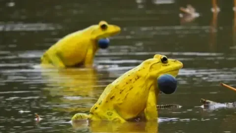 "กบอินเดียนบูลฟร็อก" ตัวผู้จะเปลี่ยนเป็นสีเหลืองสดใสในช่วงฤดูผสมพันธุ์เพื่อดึงดูดคู่Hot Topic ที่มีผู้ตอบล่าสุด