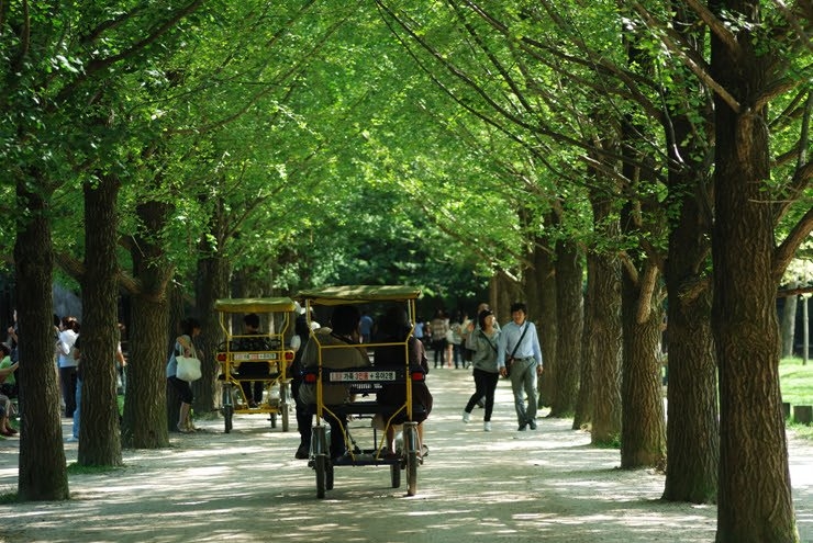 เกาะแห่งนี้มีทิวทัศน์ที่สวยงามไปด้วยต้นเกาลัดและทิวสนเรียงราย ในช่วงฤดูใบไม้ร่วงจะมีเทศกาลใบไม้เปลี่ยนสี ใบไม้ต่างเปลี่ยนเป็นสีแดงสวยงาม และมีสุสานของนายพลนามี ซึ่งยังคงตั้งอยู่ ณ เกาะแห่งนี้