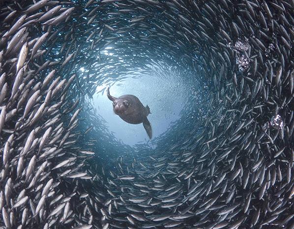สิงโตทะเลกำลังล่าเหยื่อ