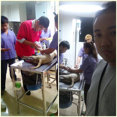 ผมก็พาไปหาหมออีก แถว รพ.สัตว์ 24 ชม.ย่านพระประแดง เพื่อหาที่นอนให้น้ำเกลือกับน้องหมา แล้วก็กลับมาดูใจ และแจ้งข่าวกับ "มนุษย์ป้า" ที่ขาอ่อน เป็นลม ล้มพับ ทำใจไม่ได้ เมื่อทราบว่าหมา โดน วาง ยา...