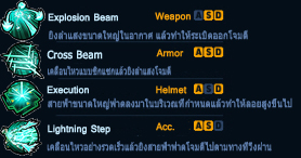 - Cross Beam : การเคลื่อนไหวแบบซิกแซก แล้วยิงลำแสงโจมตี