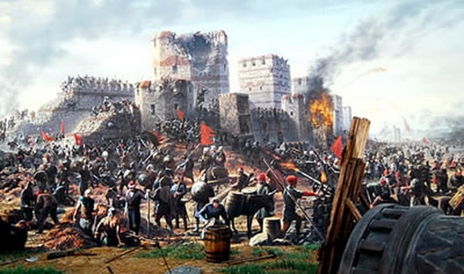 ค.ศ. 1453 สุลต่านเมห์เหม็ดที่ 2 ตีกรุงคอนสแตนติโนเปิลแตก อาณาจักรไบเซนไทน์ล่มสลาย เป็นการเริ่มจักรวรรดิออตโตมัน
