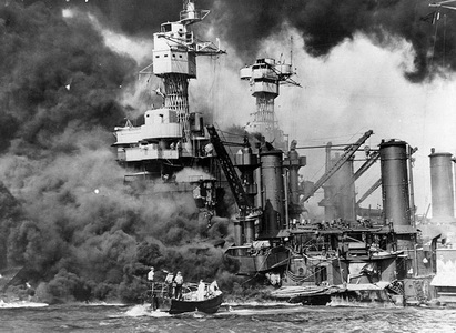 ค.ศ. 1941 จักรวรรดิญี่ปุ่นโจมตีแบบสายฟ้าแลบต่อฐานทัพเรือของสหรัฐในอ่าวเพิร์ล ฮาวาย เป็นเหตุให้สหรัฐประกาศสงครามกับญี่ปุ่นและฝ่ายอักษะเข้าร่วมสงครามโลกครั้งที่ 2