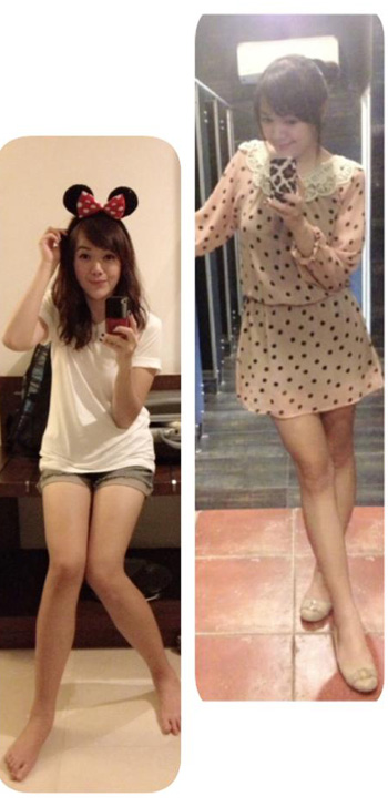 หารูปตอนพีคสุดๆไม่เจอคะ ไม่รู้ตัวเองเอาไปซ่อนไว้ไหนจำไม่ได้ 5555 แต่คืออ้วนแบบนี้แล้วผิวคล้ำมากกกเลยคะ.....หลังจากที่เริ่มลดน้ำหนักและออกกำลังกาย หนึ่งปีผ่านไป ลดไป 40 กิโลคะ น้ำหนักเบาที่สุดคือ 45 กิโลกรัม...แต่แชมว่ามันผอมเกินน่าเกลียดอ่ะ เลยเพิ่มน้ำหนักและพยายามจะคุมน้ำหนักให้คงที่ ตอนนี้หนักประมาณ 54-55 กิโลกรัมคะ มาๆๆดูรูปตอนผอมแล้วกันน้าา