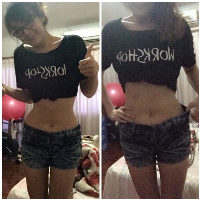 รูปร่างปัจจุบันของแชมป์ค่ะ รูปซ้ายคือเมื่อสามอาทิตย์ที่แล้วที่เริ่มเล่น T25 ที่เห็นว่าเอวเหมือนจะคอด ฮ่าๆๆ เพราะเล่นฮูล่าฮูปค่ะ ส่วนรูปขวาเพิ่งถ่ายสองวันที่แล้ว คือหลังจากเล่นT25มาสามอาทิตย์ คือมันไม่ช่วยให้น้ำหนักลงนะคะ แต่ช่วยให้กระชับขึ้น....อยากมีแพ็คอ่าา แต่แพ็คไม่ขึ้นซะที มีแต่พุงน้อยๆอยู่เลยคะ ฮ่าๆ