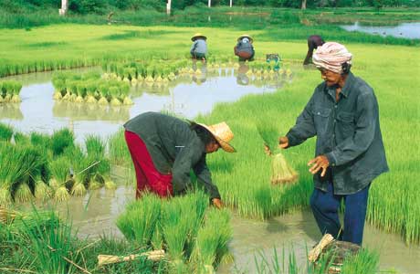 พอไปถึงที่นา หากเป็นเดือนเจ็ดเดือนแปด พ่อมาก็จะลงไปไถนาหรือคราดนาไว้ เพื่อปักดำนา ส่วนฉัน ก็จะลงไปถอนกล้า พอสายหน่อย ก็จะรีบขึ้นไปทำกับข้าวกินกัน หลังจากกินข้าว เป็นที่เรียบร้อยแล้ว ก็จะรีบลงไปปักดำนากัน
