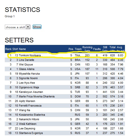 จากทั้งสามภาพนั้นแสดงให้เห็นเลยว่า Nootsara Tomkom นั้นคะแนนการเซ็ตนอกจากจะเป็นอันดับ 1 ของกรุ๊ปแล้ว ยังเป็น อันดับ 1 ของรายการเลยก็ว่าได้ อิอิ อีกไม่กี่แมทเรามาเอาใจช่วยสาวไทยในการแข่งขัน Volleyball World Grand Prix 2014 กันดีกว่า
