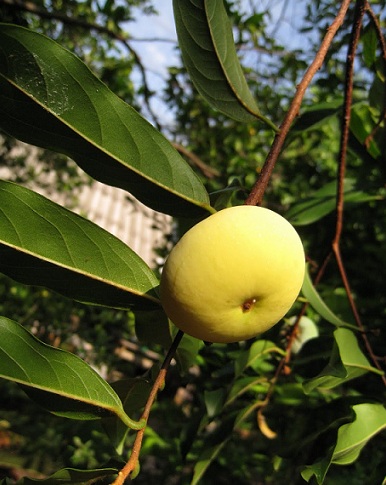 ผลกลม ขนาดเส้นผ่าศูนย์กลางผล 4-8 เซนติเมตร ที่ผลยังมีส่วนของกลีบเลี้ยงติดอยู่ที่จุก เมื่อสุกมีสีเหลืองเนื้อนุ่ม รสหวาน และมีกลิ่นหอม กินได้