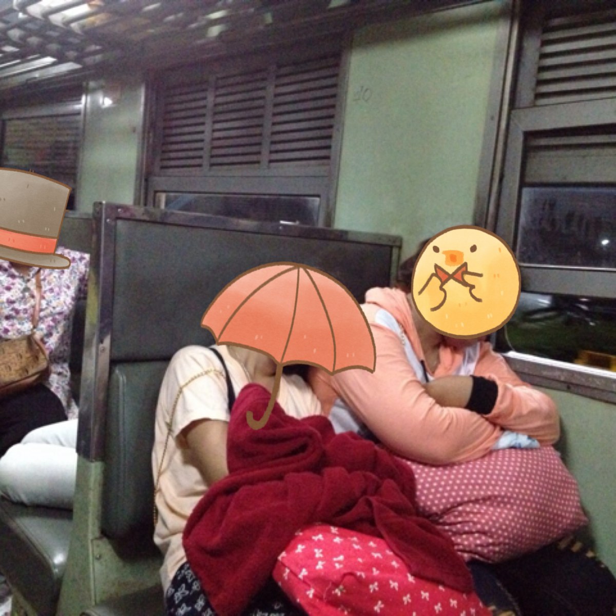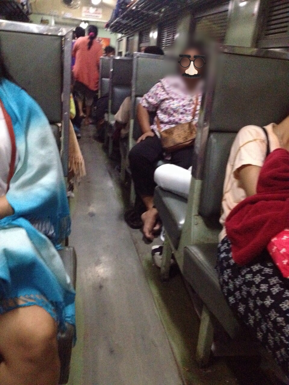 และถ้าสังเกตุตั้งแต่รูปแรกๆ จะเห็นว่า พื้นทางเดินและใต้ที่นั่ง ไม่สะอาดเอาเสียเลย แต่ทุกครั้งที่เรานั้งรถไฟลงใต้ เราจะสังเกตุเห็นยายแก่ๆ หรือไม่ก็ป้าๆ หรือแม้กระทั่งแม่ เอาเสื่อ หรือบางคนอาจใช้กระดาษหนังสือพิมพ์ปูให้เด็กๆนอนหรือบางทีก็นอนเองนอนมันใต้ที่นั่งนั่นแหละ (อันนี้กรณีช่วงเทศกาลที่รถเต็ม ต้องตีตั๋วยืน)