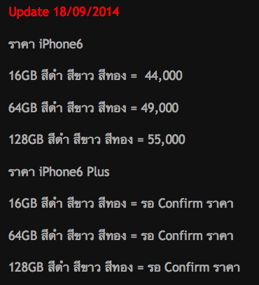 สอบถามราคา iPhone 6 และ iPhone 6 Plus ได้หลังไมค์โดยผู้ที่สนใจสั่งซื้อต้องมัดจำล่วงหน้า 20,000 บาท
