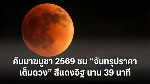 ห้ามพลาด! คืนมาฆบูชา 2569 ชม "จันทรุปราคาเต็มดวง" สีแดงอิฐ นาน 39 นาที