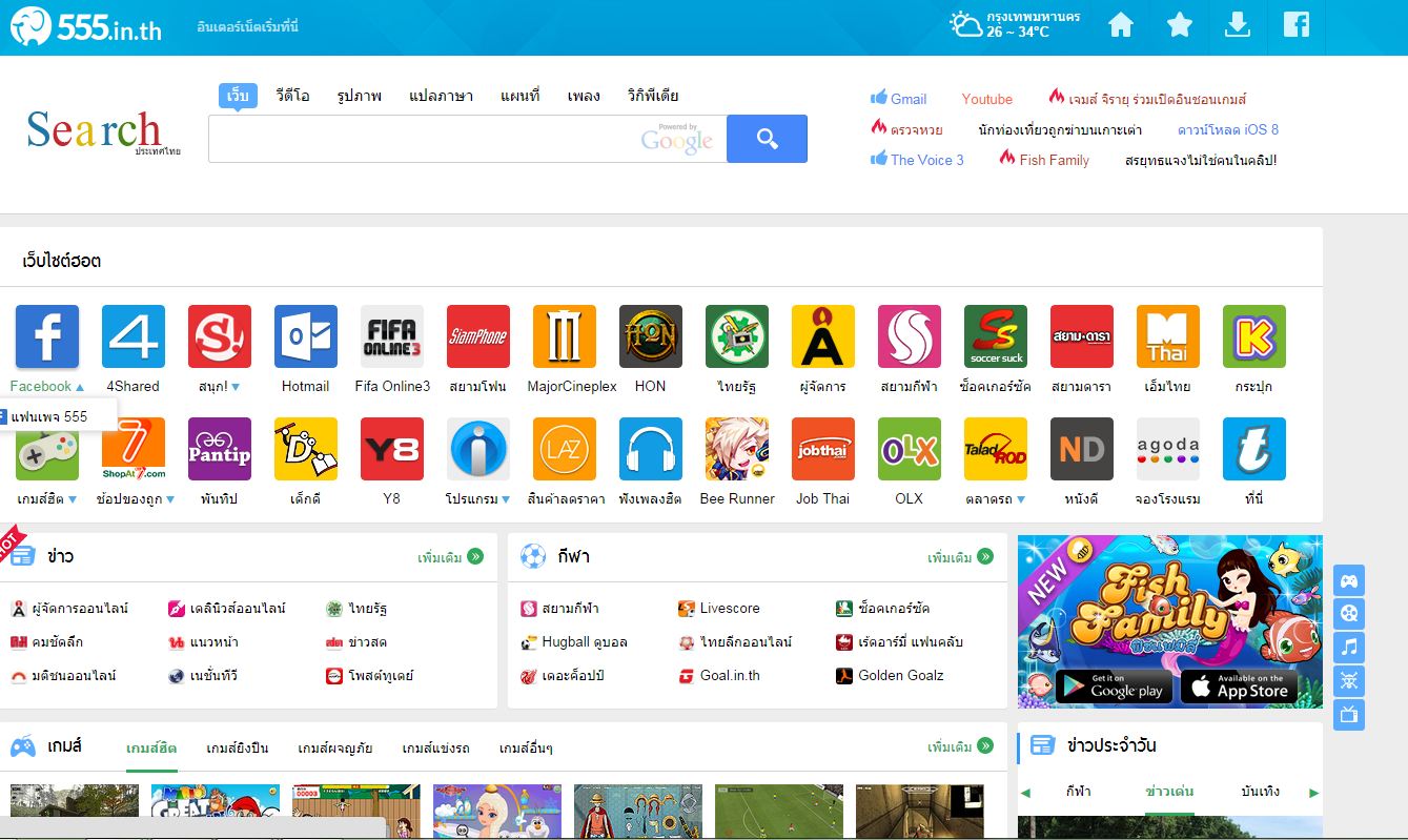 เว็บไซต์น้องใหม่ที่ใครหลายๆคนอาจจะยังไม่รู้ว่าช่วยให้ชีวิตของเราสะดวกสบายขึ้นอย่างไร www.555.in.th เป็นเว็บไซต์ประเภท “สารบัญ” เว็บ ที่ประมวลผลจากสถิติและความนิยม โดยรวบรวมทุกๆเว็บไซต์เหล่านั้นไว้ในหน้าแรกของเว็บ ทำให้เราสามารถเข้าถึงเว็บไซต์ที่เรานิยมหลากหลายโดยไม่ต้องพิมพ์ชื่อเว็บไซต์นั้นๆใหม่ นอกจากความสามารถในการเข้าถึงเว็บไซต์อื่นๆแล้ว ยังรวบรวมทุกความนิยมให้คุณไม่ตกเทรนด์ ทันเหตุการณ์เสมอ โดยแยกเป็นประเภท เช่น ข่าว, กีฬา, เกมส์, ละคร, ซีรีส์, ผลบอล, เพลง, App & โปรแกรม เป็นต้น เรียกได้ว่าครบทุกเรื่องที่คุณอยากรู้ โดยไม่จำกัดเพศ วัย สถานะ สมกับเป็น “สารบัญ” เว็บไซต์จริงๆ วิธีใช้แบบสะดวกรวดเร็วที่สุดคือตั้ง www.555.in.th ไว้เป็นหน้า homepage ของคุณเพื่อเป็นประตูเข้าสู่เว็บไซต์อื่นๆอย่างรวดเร็ว