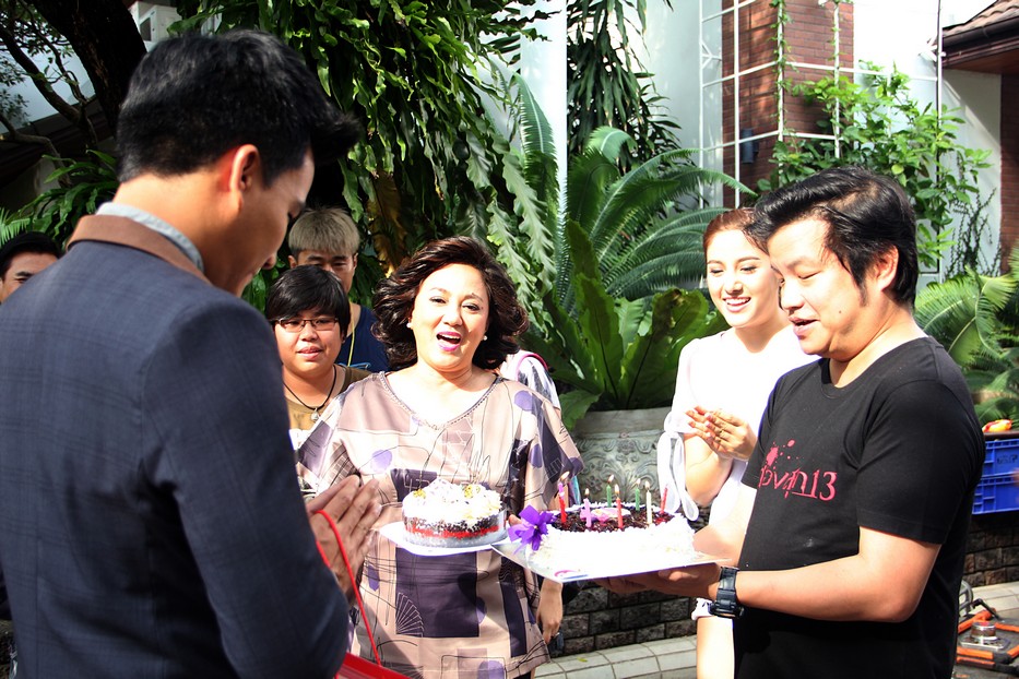 ยิ่งทำให้เซอร์ไพรส์เข้าไปอีก เมื่อ นายประวิทย์ ผู้บริหารช่อง 3 ได้ส่งเค้กก้อนโตมาอวยพรวันเกิดให้ถึงกองถ่าย งานนี้ทำเอาหนุ่มสวิสถึงกับยิ้มแก้มปริ เดินขอบคุณนักแสดง และทีมงานทุกคนที่ร่วมเซอร์ไพรส์ให้กับตนเองจนทั่วกอง โดยเจ้าตัวยังได้แอบบอกความรู้สึก และฝากขอบคุณมากับทางทีมงานอีกว่า “ดีใจมากๆ และขอบคุณมากๆครับที่คุณประวิทย์ ส่งเค้กมาอวยพรวันเกิดผม ขอบคุณคุณแป๊บครับที่ทำเซอร์ไพรส์ครั้งนี้ให้กับผม ขอบคุณนักแสดงทุกๆท่าน และทีมงานทุกคนด้วยครับ ผมมีความสุข และ ดีใจมากจริงๆครับ”