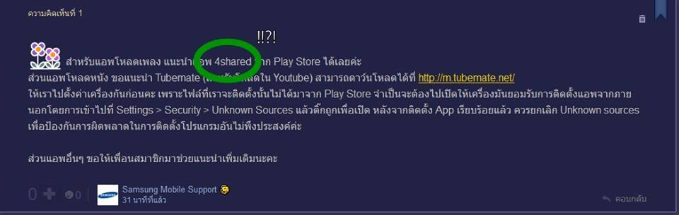 เงิบ!! เมื่อ Samsung แนะนำลูกค้าให้ใช้ 4Shared โหลดเพลง!