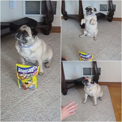 น้องหมาแสนรู้ โชว์ความสามารถสุดเจ๋งแม้ตัวจะอวบก็บ่ยั่น!! ทำได้ทุกอย่างเพื่อเจ้านายจริงๆนะ ตั้งแต่ยืนสองขาเอย กลิ้งเอย พูดกับเจ้านายได้เอย ถามยังบอกรัก I love you ได้อีก แต่เจ้านายสุดที่รักขอของกินแสนอร่อยเติมพลังงานด้วยนะเจ้านาย ถ้าหมดแรงไปเดี๋ยวข้าน้อยทำได้ไม่เต็มที่