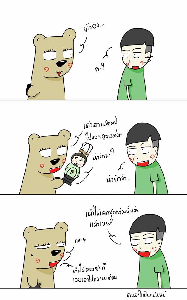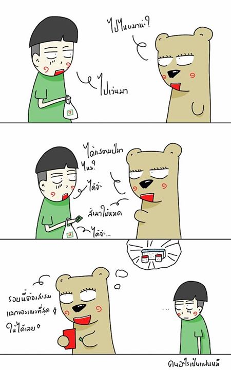 เริ่มกันด้วยเพจที่มาแรงที่สุดในปีนี้อย่าง “คนอะไรเป็นแฟนหมี” โดยคราวนี้ หมี ก็สวมบทเป็นตัวร้ายเช่นเคย ด้วยการปล้นแสตมป์ 7-Eleven จากแฟนผู้แสนซื่อ เพื่อไปแลกชุดกล่องนั่งเล่น AEC แหม่ ถือเป็นการสะสมแสตมป์ที่ไม่ต้องควักเงินซักบาทเลยเนอะ.. ร้ายจริงๆ
