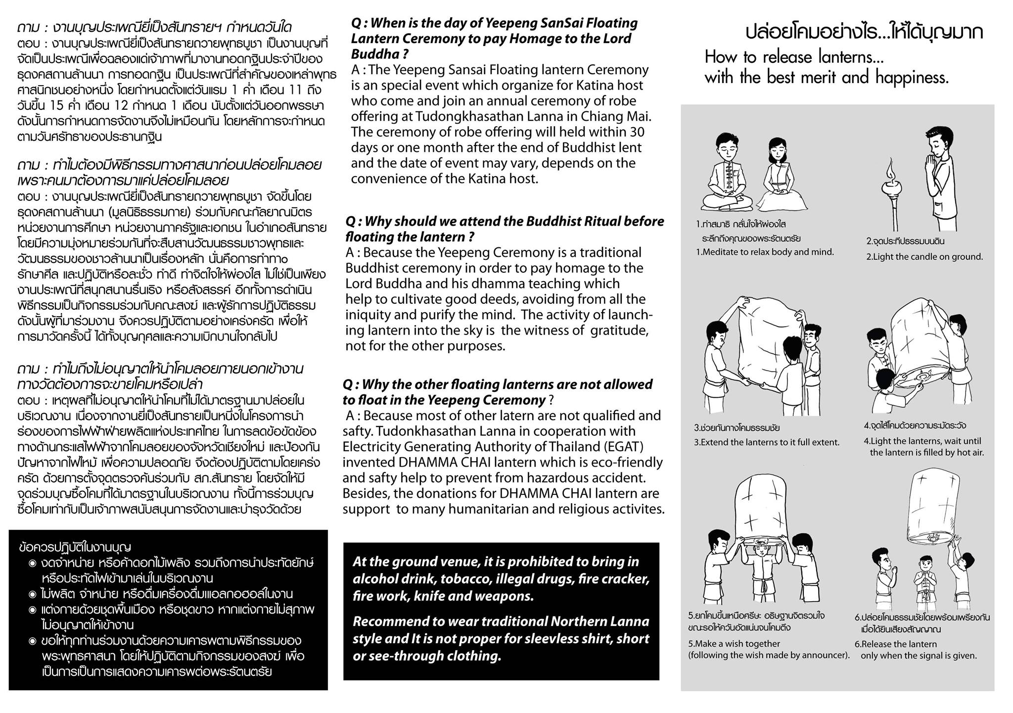 ผู้ที่เดินทางมาร่วมในพิธีปล่อยโคมยี่เป็งนี้จะแต่งกายด้วยชุดสีขาว