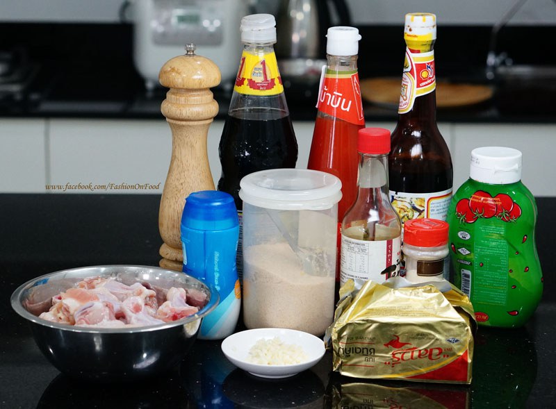 2. เตรียมน้ำซอสสำหรับหมักไก่ค่ะ ผสมน้ำมันหอย ซีอิ๊วขาว ซอสภูเขา ผงกระเทียมสำเร็จ ซอสมะเขือเทศ ซอสพริก พริกไทยดำ เนย น้ำตาล กระเทียมสับ ผงปรุงรส ผงกระเทียม ชิมแล้วปรับจนได้รสที่ชอบ