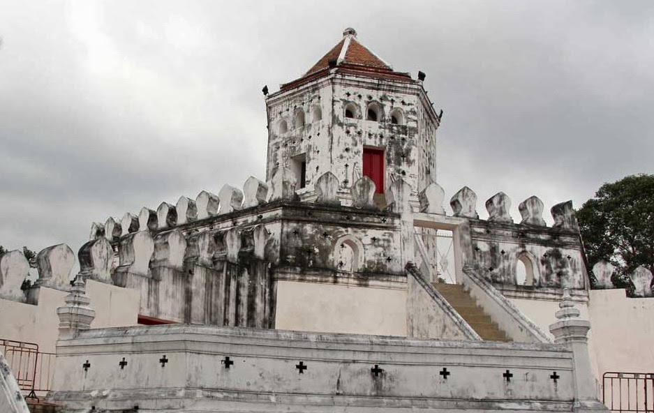 14. ป้อมมหาสัตตโลหะ อยู่บนกำแพงด้านตะวันตก เหนือประตู อุดมสุดารักษ์