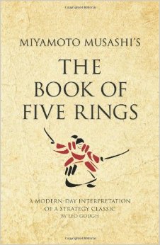 มูซาชิยังเป็นคนเขียนหนังสือที่มีชื่อว่า คัมภีร์ห้าห่วง ถือได้ว่าเป็นหนังสือสุดยอดกลยุทธ์การรบ ที่ทั่วโลกยอมรับว่า เป็นผลงานอัจฉริยะ มูซาชิ มิได้มีแค่ชัยชนะในสมรภูมิเท่านั้น หากเป็นทั้งการแสวงหาทางด้านจิตวิญญาณ-ความหมายแห่งชีวิตและความเป็นเลิศในเชิงดาบไปพร้อม ๆ กัน