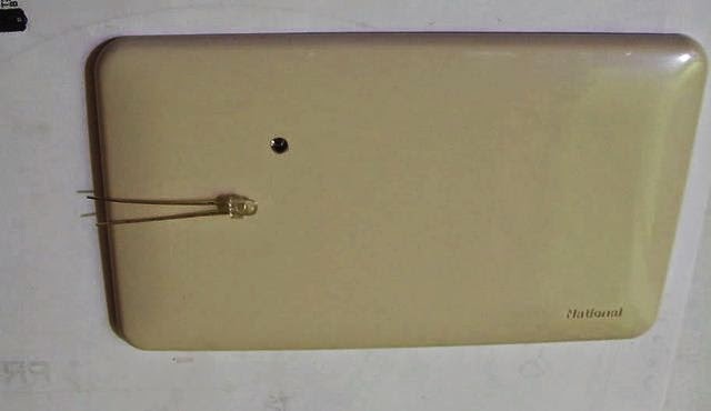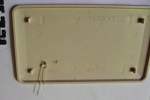 สำหรับฝาปิดของสวิทช์ ใช้ฝาทึบทัวไปมาเจาะรูปสำหรับรับแสงอินฟาเรด แล้วตัดส่วนนูนของหลอด LED 3 มิลลิเมตรมาติดไว้ที่รูดังรูปด้านล่าง