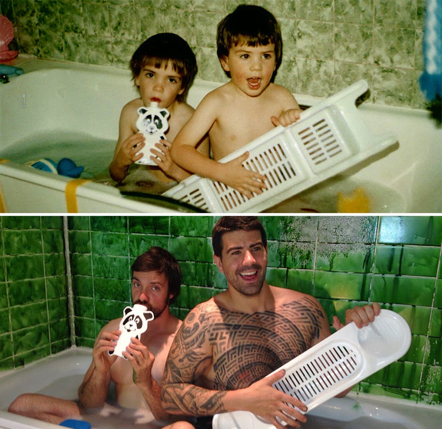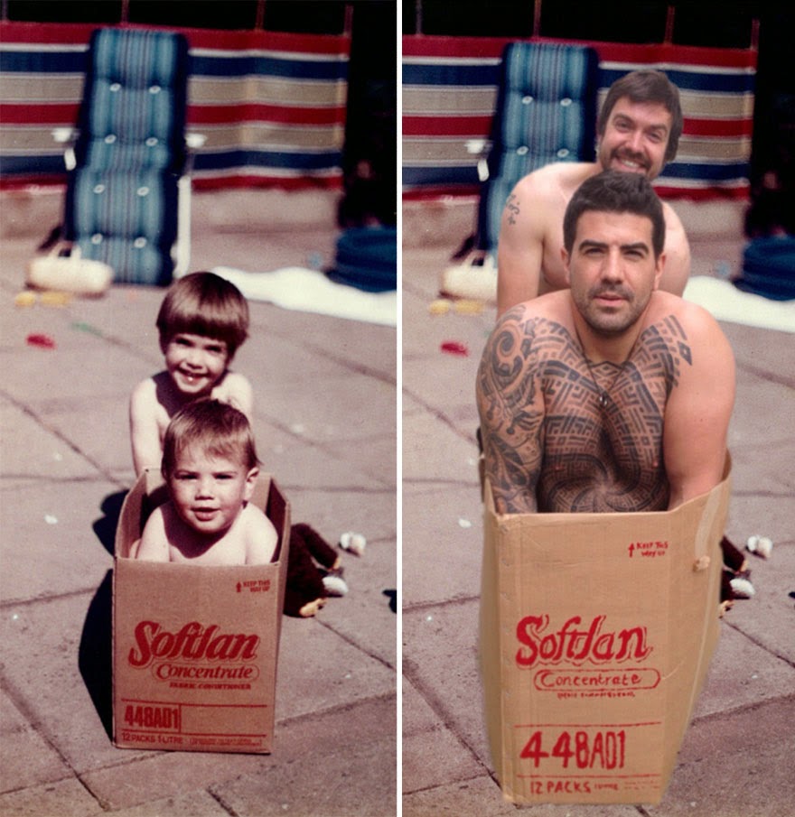 สองที่น้อง Matthew และ James กลับมาถ่ายภาพพวกเขาอีกครั้งเปรียบเทียบ กับภาพในวัยเด็ก ในสถานที่ และเครื่องแต่งที่พยายามให้เหมือนแบบเดิม ดูแล้ว แอบชำๆ น่ารักดีจัง