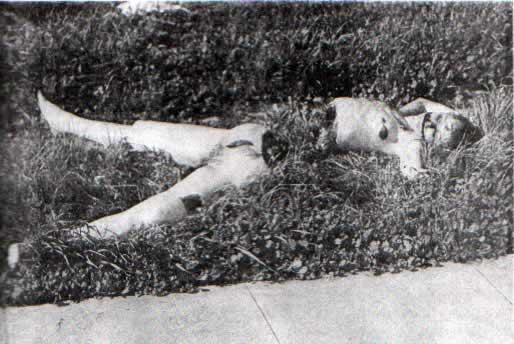 ขณะเดียวกันกับนักดับเพลิงประจำท้องถิ่นผ่านมาถึงกับหยุดจอดเพราะนึกว่า รูปปั้นทิ้งไว้ แต่พอเห็นศพถึงกับโก่งคออาเจียน
