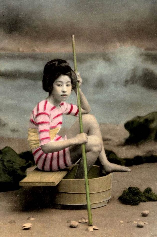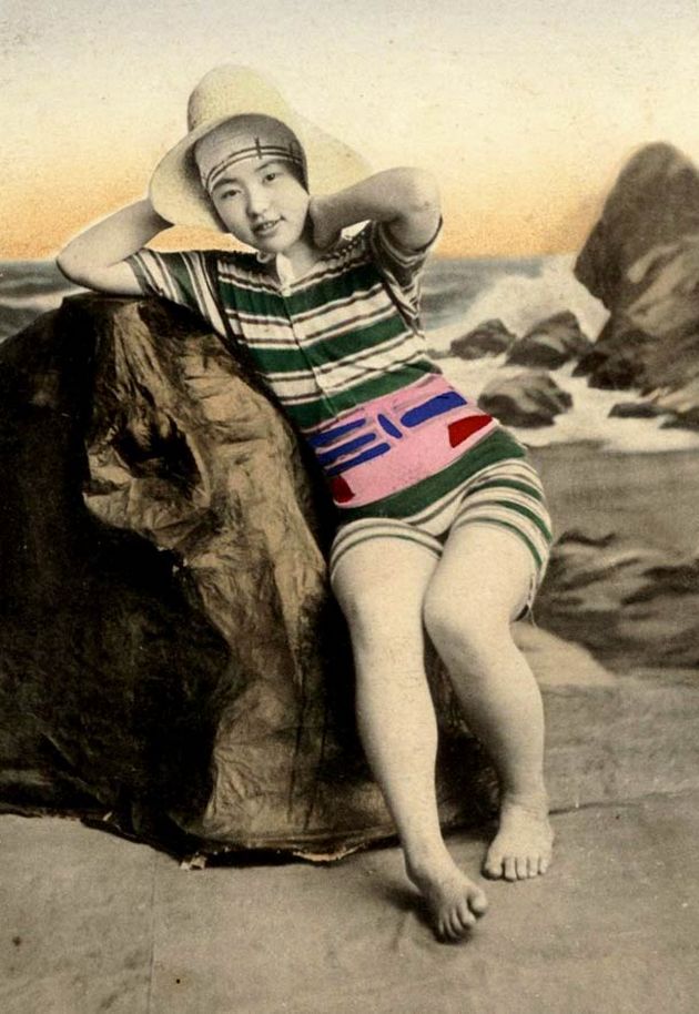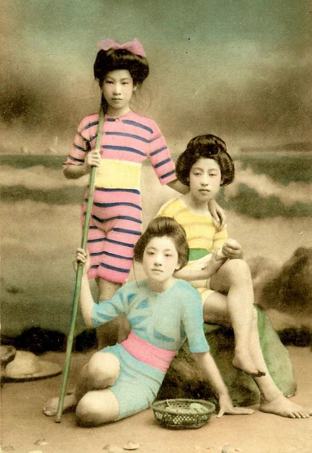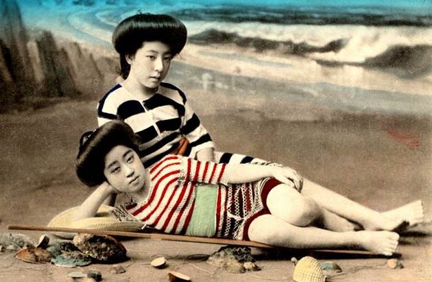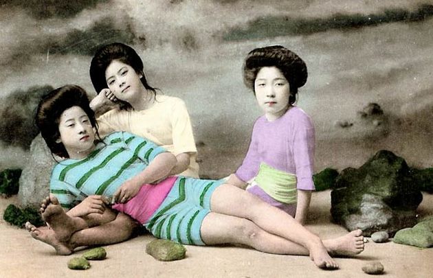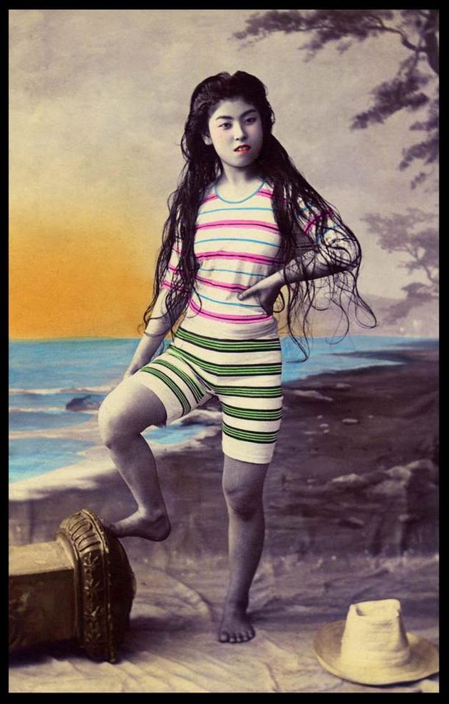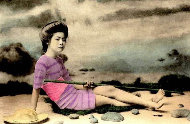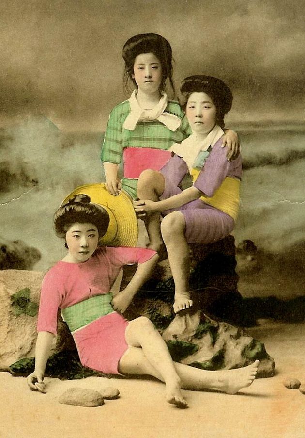 การถ่ายแบบชุดว่ายน้ำในปัจจุบัน เป็นที่สนใจของหนุ่มๆ อยู่เสมอ ยิ่งถ้านางแบบเป็นผู้หญิงในดวงใจด้วยแล้ว คงทำให้หนุ่มๆ ละลายกันได้เลยล่ะ แต่วันนี้เราจะพาไปดูแฟชั่นการถ่ายแบบชุดว่ายน้ำของเหล่าสาวเกอิชา ที่ถ่ายไว้ตั้งแต่สมัยเมจิของญี่ปุ่น (ค.ศ.1868-1912) ถูกรวบรวมไว้โดย Okinawa Soba ช่างภาพชาวญี่ปุ่น และยังถูกตกแต่งสีสันเข้าไปเพื่อให้สวยงามขึ้นด้วย