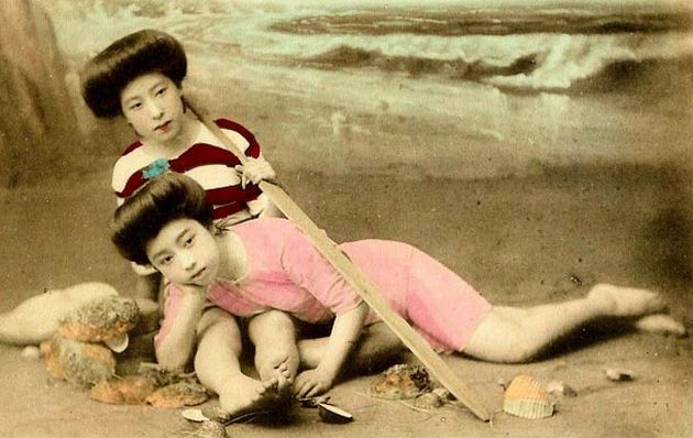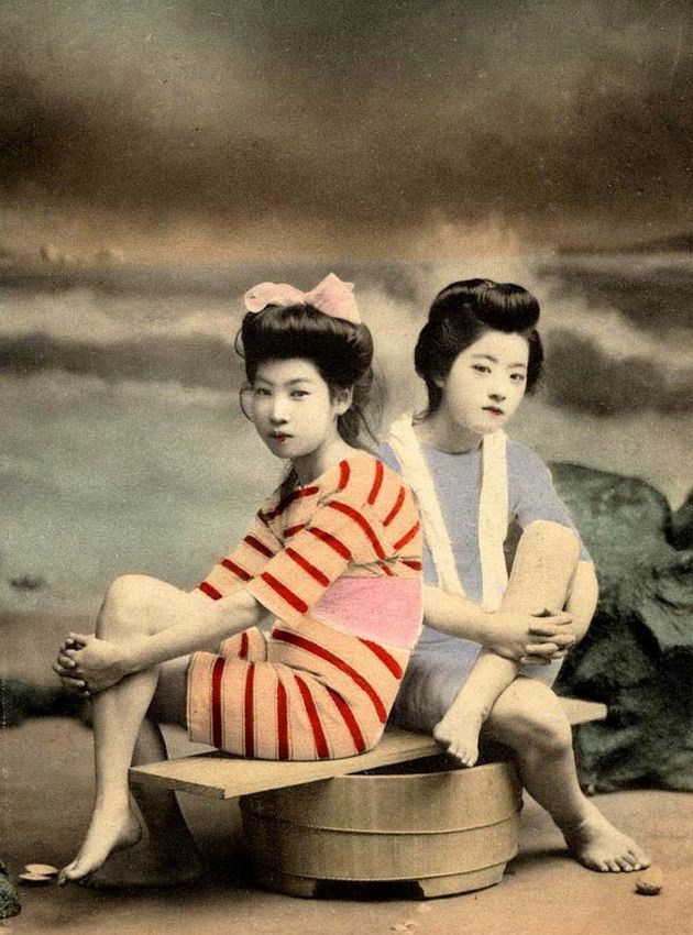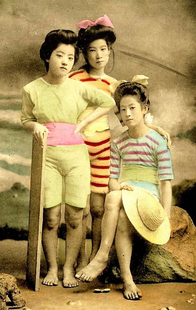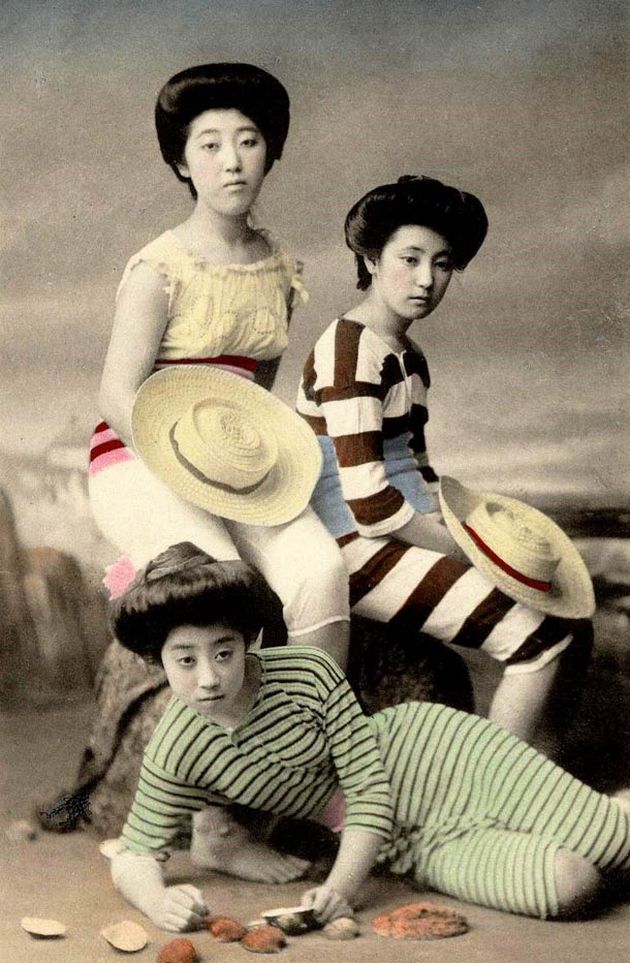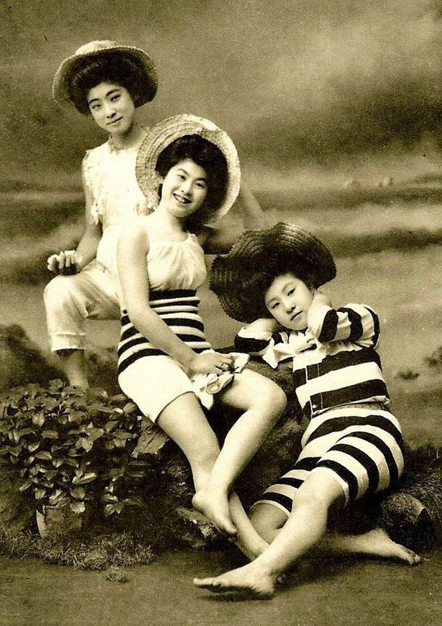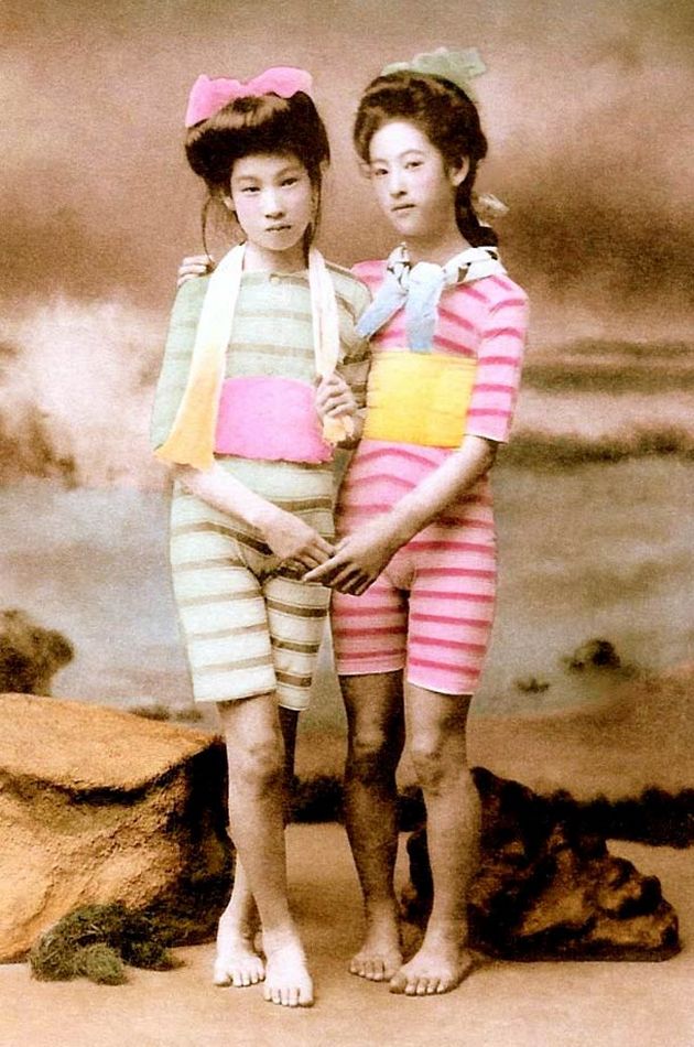 การถ่ายแบบชุดว่ายน้ำในปัจจุบัน เป็นที่สนใจของหนุ่มๆ อยู่เสมอ ยิ่งถ้านางแบบเป็นผู้หญิงในดวงใจด้วยแล้ว คงทำให้หนุ่มๆ ละลายกันได้เลยล่ะ แต่วันนี้เราจะพาไปดูแฟชั่นการถ่ายแบบชุดว่ายน้ำของเหล่าสาวเกอิชา ที่ถ่ายไว้ตั้งแต่สมัยเมจิของญี่ปุ่น (ค.ศ.1868-1912) ถูกรวบรวมไว้โดย Okinawa Soba ช่างภาพชาวญี่ปุ่น และยังถูกตกแต่งสีสันเข้าไปเพื่อให้สวยงามขึ้นด้วย