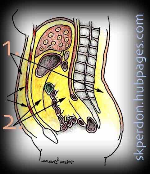 ภาพ__ ไขมันใต้ผิวหนัง (1) vs ไขมันในช่องท้อง หรือ ไขมันอ้วนลงพุง (2)