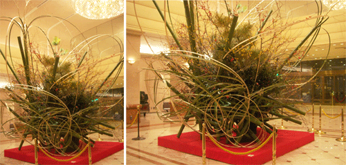 นี่คือภาพของสิ่งที่ไปเห็นมา เป็นการตกแต่งของโรงแรมน่ะ ชาวญี่ปุ่นเรียกกันว่า คาโดมัทสึ (Kadomatsu, 門松) แปลกันตรงๆ ว่า “ประตูสน” มีลักษณะคล้ายกับกระถางหรือแจกันขนาดใหญ่พันด้วยฟางถัก เป็นของประดับตกแต่งอาคารบ้านเรือนช่วงปีใหม่ ซึ่งแต่ละภูมิภาคจะหน้าตาที่ไม่เหมือนกัน โดยทั่วไปแล้วจะประกอบด้วยไม้ไผ่ กิ่งสน และอาจจะมีช่อดอกบ๊วย หรืออื่นๆ ที่มีความหมายเป็นสิริมงคลด้วยก็ได้