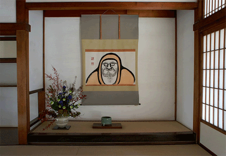 แล้วภายในบ้านของชาวญี่ปุ่นก็อาจจะมีการจัดมุมใดมุมหนึ่งไว้ เพื่อรับรองแขกที่มาอวยพรปีใหม่โดยเฉพาะ เรียกว่า “โทโคโนมะ (Tokonoma, 床の間)” ซึ่งยกพื้นสูงขึ้น ตกแต่งด้วยภาพแขวนที่เรียกว่า “คาเคะจิกุ (Kakejiku, 掛軸)” เป็นภาพสัญลักษณ์หรือภาพสัตว์มงคล มีแจกันหรือถาดดอกไม้อิเคบานะ (Ikebana, 生け花) จัดตกแต่งไว้อย่างประณีต