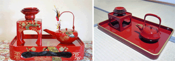 นอกจากนี้อาจจะตั้งชุดกาและจอกเหล้าโบราณรสแรง ที่เรียกว่า โอโทโสะ (Otoso, 屠蘇) ไว้ด้วย เพื่อดื่มอวยพรกันตามประเพณี ถ้าเป็นสมัยก่อนบ้านซามูไรทั้งหลาย ก็จะเอาชุดเกราะมาตั้งประดับไว้ด้วย