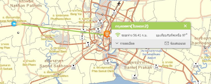 - ระยะห่างจากเสาส่ง : ประมาณ 60 กิโลเมตร <จ.นครปฐม>