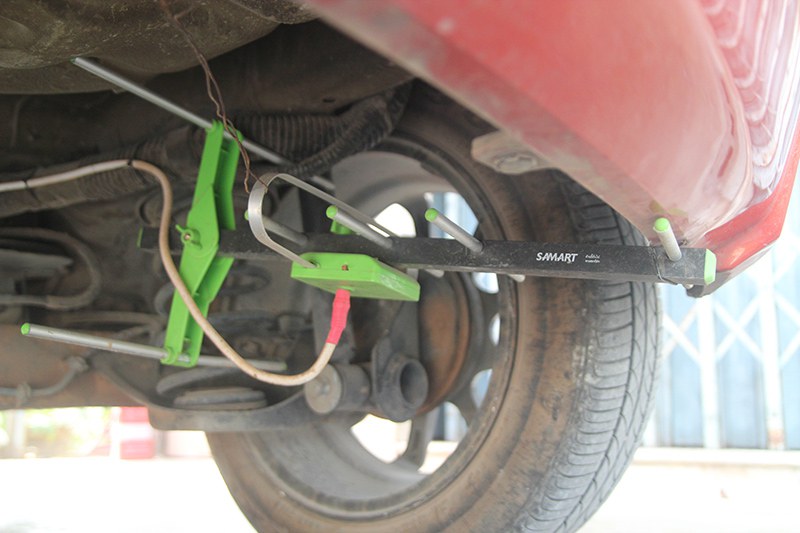 ส่วนตัวแผงรับ อยู่ใต้ท้องรถ บริเวณล้อหลังขวา โดยให้ปลายแผงรับโผล่ออกมานิดหน่อย แล้วรัดเข้ากับ CableTie