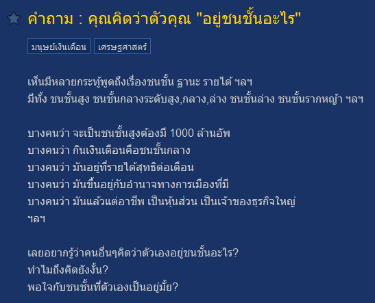 จากประเด็นในพันทิพย์ถามว่า...คุณคิดว่าตัวคุณ "อยู่ชนชั้นอะไร