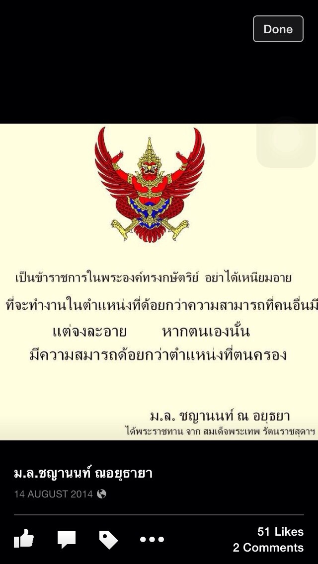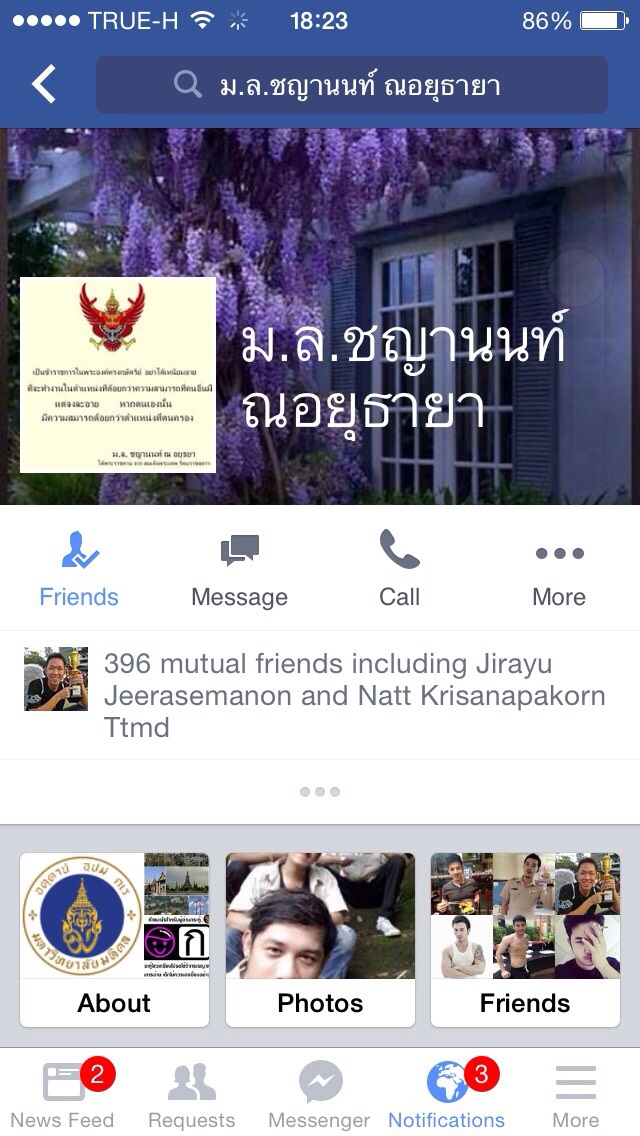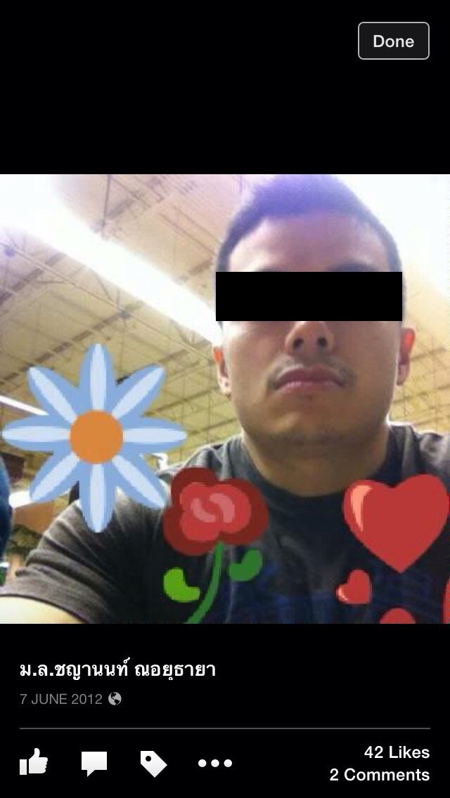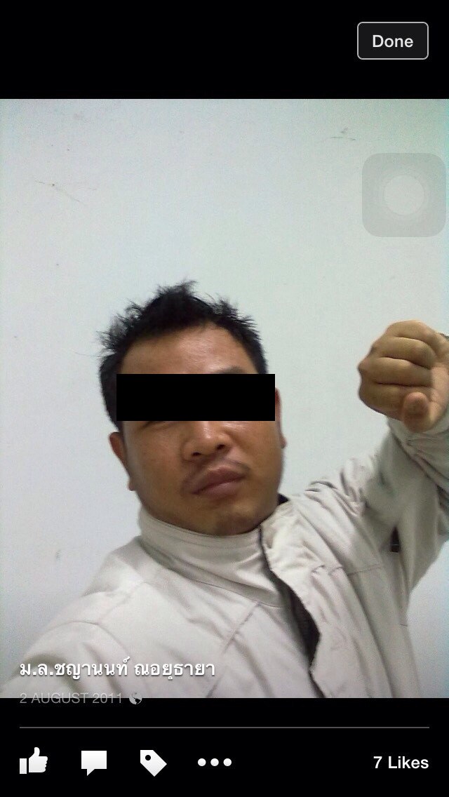 มาอีกรายแล้วนะคะสำหรับพวก(ราชนิกูลกำมะลอ)ครามนี้เจอเองกันตัวเลยคะ เรื่องมีอยู่ว่าบุคคลในfaceดังกล่าวได้ส่งข้อความมาคุยกับเพื่อนของดิฉันคะ และเพื่อนได้เอาfaceและข้อความที่เขาส่งมาคุยด้วยให้ดู ดิฉันเห็นแล้วก็รู้เลยว่าที่ไงมาอีกรายแล้วบุคคลดังกล่าวได้ใช้ชื่อfaceว่า "ม.ล.ชญานนท์ ณ อยุธยา" และมีการนำตราแผ่นดินพระราชลัญจกรพระครุฑพ่าห์ รวมถึงพระนามของสมเด็จพระเทพฯมาประกอบในเอกสารฉบับหนึ่งที่ดูๆก็รู้เลยว่าทำขึ้นมาเอง