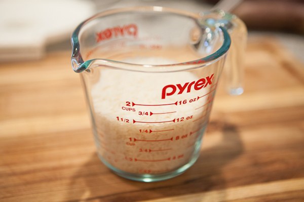 - จากนั้นผสมข้าวที่แช่จนพองให้เข้ากันกับน้ำในถ้วย ทิ้งเอาไว้สักพักจนมันตกตะกอน แล้วเทน้ำทิ้งให้เหลือแค่ตะกอนตรงก้นถ้วยไว้ (ข้าวพองๆ ที่แช่ในถ้วยก็เก็บไว้นะจ๊ะ)