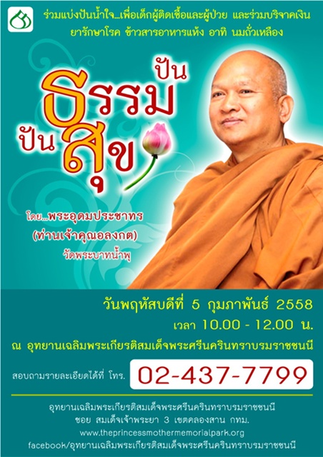 สำลี , แพมเพิสสำหรับเด็กและผู้ใหญ่ , ตุ๊กตา , ทุนการศึกษา ฯลฯ ให้กับผู้ป่วยที่รักษาตัวอยู่ในมูลนิธิธรรมรักษ์ โดยได้นิมนต์ ท่านเจ้าคุณอลงกต พระอุดมประชาทร เจ้าอาวาสวัดพระบาทน้ำพุ จ. ลพบุรี ร่วมบริจาค ได้ตั้งแต่บัดนี้ – วันพฤหัสบดีที่ 5 กุมภาพันธ์ 2558