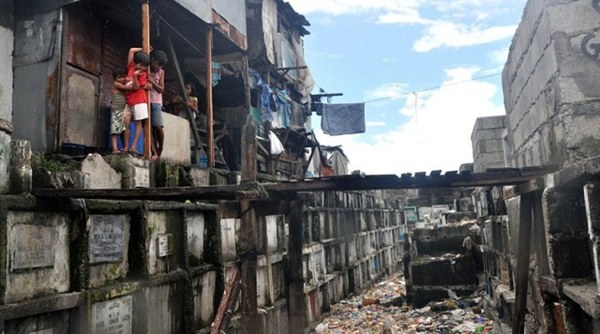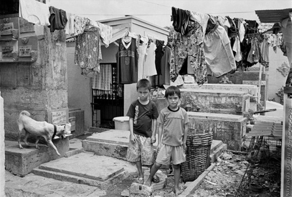 สลัมบนหลุมศพ โดยเป็นสลัมที่ตั้งอยู่บนพื้นที่ของสุสานที่มีพื้นที่กว่า 54 เอเคอร์ มีประชากรอาศัยอยู่ 6,000 กว่าคน ด้วยความกลัวที่จะไม่มีที่อาศัย ผู้คนที่อาศัยอยู่ที่นี่จึงลืมความน่ากลัวของสถานที่ไปหมดสิ้น โดยปูน และหินอ่อนที่ใช้เป็นหลุมศพนั้นถูกดัดแปลงให้กลายเป็นเตียงนอน หรือพื้นรองรับกระท่อมซอมซ่อจำนวนมาก อีกทั้งไฟฟ้าก็ต่อจากแถวถนนเพื่อใช้ ที่สำคัญน้ำที่ใช้อุปโภคบริโภคนั้นก็มาจากบ่อน้ำในสุสาน