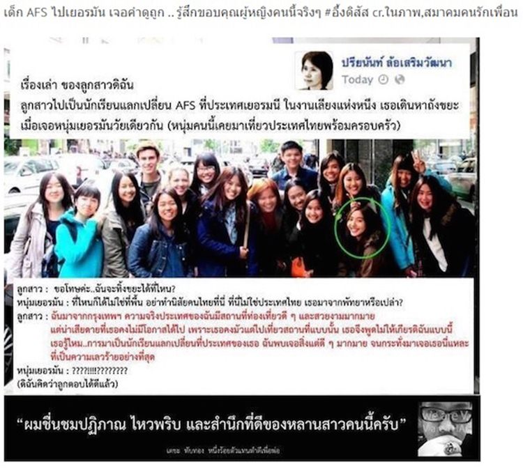 โดยเรื่องราวดังกล่าวนี้มีสมาชิก Facebook ชื่อว่า "ปรียนันท์ ล้อเสริมวัฒนา" ได้โพสต์ข้อความเกี่ยวกับเรื่องราวของลูกสาว ที่ได้ไปเป็นนักเรียนแลกเปลี่ยนที่ประเทศเยอรมัน โดยเธอเล่าว่า