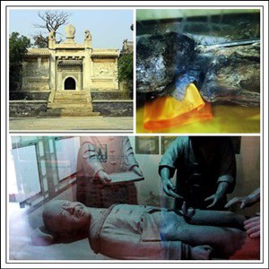 สภาพศพที่ขุดขึ้นมาได้ที่เชื่อว่าเป็นเทียนอี้ ซึ่งผลพิสูจน์บอกว่าศพมีสารตะกั่วจำนวนมากในศพ ซึ่งในปี 1911 สุสานแห่งนี้ถูกรื้ออละถูกขโมยของมีค่าออกไป ไม่ต่างกับการขโมยพระศพของจักรพรรดิหรือศพของขุนนางยุคโบราณ เทียนอี้เป็นขันทีในราชวงศ์หมิง รับใช้จักรพรรดิมา 3 พระองค์ โดยหลังจากเขาตายจักรพรรดิทรงรับสั่งฝังศพเขาไวั ณ ที่นี่