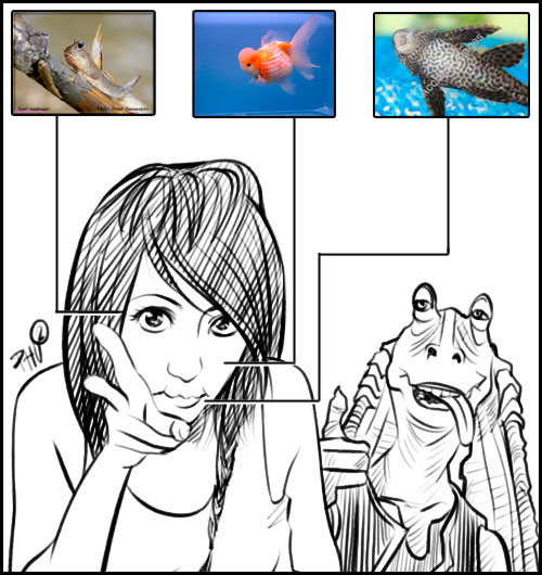 สำหรับ การทำหน้าให้ถูกสนธิสัญญาแอ๊บแบ๊วสากลนั้น หลักใหญ่ใจความไม่ยากมากนักหรอก คือการทำหน้ามันไม่ยากนะครับ มันก็จะประมาณเอาสัตว์น้ำหลาย ๆ ชนิดมาผสมข้ามพันธุ์กันดังนี้