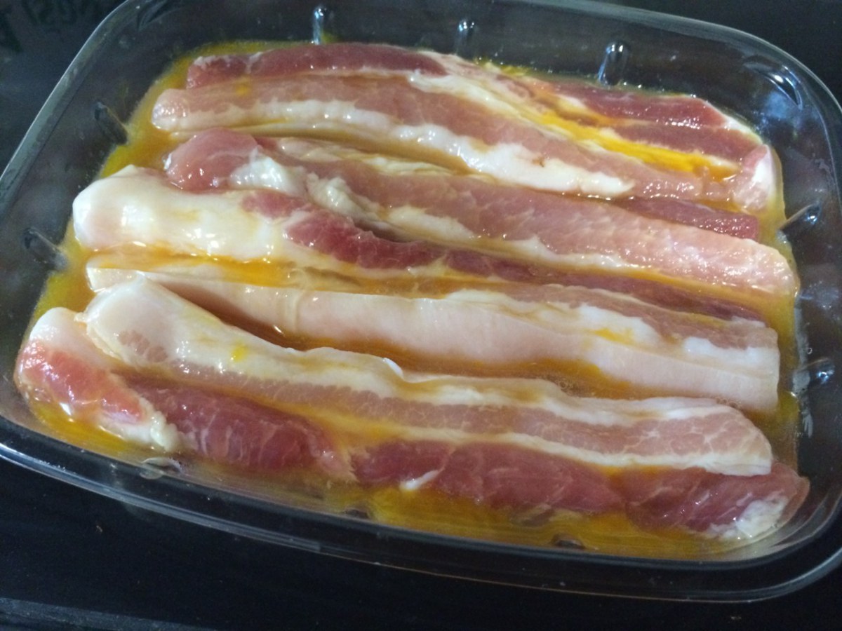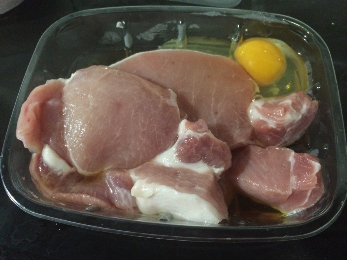 อันดับแรก ล้างหมูให้สะอาด แล้วนำมาคลุกกับน้ำปลา ทิ้งไว้ 10 นาที จากนั้น นำไข่ไก่มาหมักต่ออีก 20 นาที