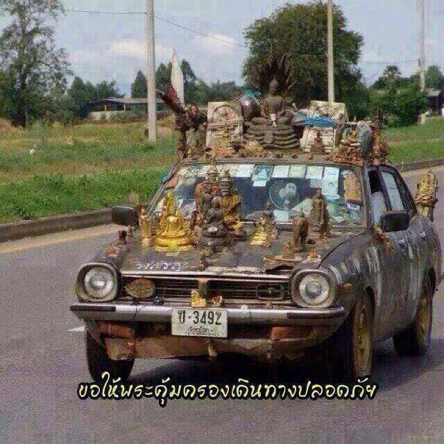 วัตถุมงคลเต็มคันรถ ช่วงนี่อุบัติเหตุเยอะ ไม่เชื่ออย่าลบหลู่