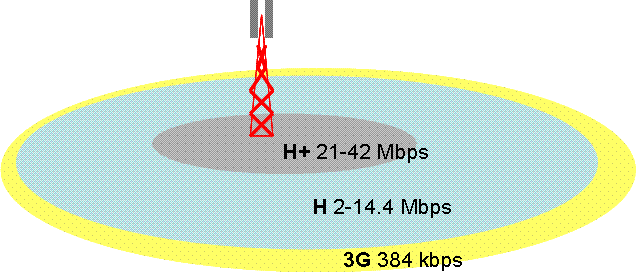 จากชาร์ตข้างต้นอาจจะสงสัยกันว่าระยะของ H+, H, และ 3G มีรัศมีประมาณเท่าไหร่ ตรงนี้ก็ต้องบอกว่าขึ้นกับประเภทของเสา และความถี่ของคลื่น (850/900/2100MHz) แต่รายละเอียดไม่ขอลงลึกเดี๋ยวมันจะยาวไปครับ